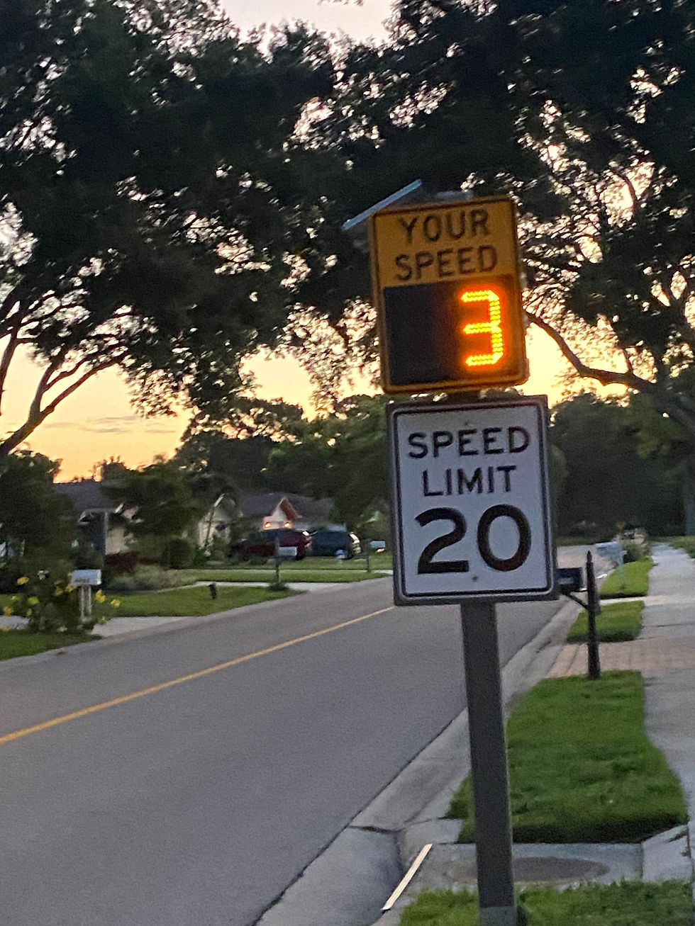 As many of you know, I’ve been walking most early mornings since I retired in 2023. In doing research on the benefits of walking for my first book, “Empower Your Golden Years,” I found that, as a senior, if you can build up to 2-2.5 miles an hour, you’re doing great. As you can see from one of the speed signs on my walking route, I built up to 3 miles per hour.
